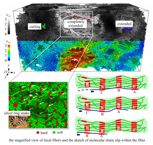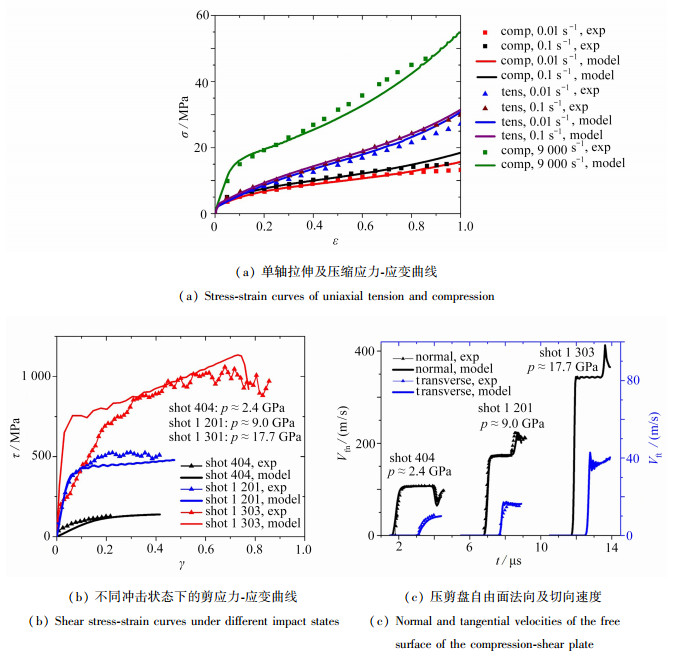 聚脲弹性体在冲击防护领域有广阔的应用前景,然而,目前对于聚脲在高压冲击、层裂等情况下的变形失效物理机制仍不明晰,尚缺乏有效描述聚脲在多种应变率及应力状态下动态变形和失效的本构及损伤模型. 针对这些挑战性问题,该文结合实验表征、分子动力学仿真以及宏观力学建模,对聚脲弹性体在不同应变率、冲击压力及应力状态下的变形失效行为进行了系统研究. 通过建立聚脲全原子和两种粗粒化模型及微结构演化分析,揭示了聚脲在高应变率拉伸、高压冲击等载荷下的变形微观物理机制,以及高应力三轴度下的动态失效物理机制. 建立了考虑强冲击下应变率-温度-压力耦合效应的聚脲弹性体本构模型,以及包括孔洞形核准则、流动法则的多种变形模式统一描述的宏观损伤模型. 经验证,所建立的宏观力学模型能够正确描述聚脲在冲击载荷下的动态变形失效行为. 该工作可为后续聚脲弹性体的优化设计及冲击防护应用提供指导.