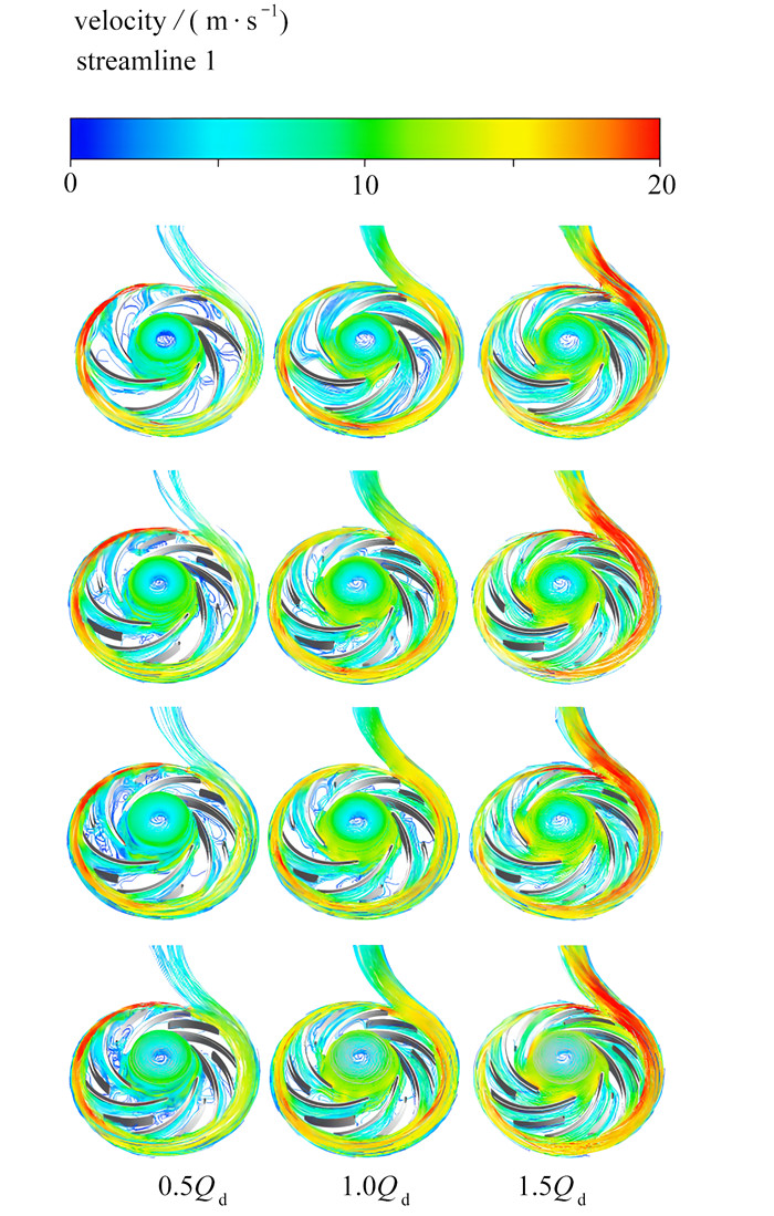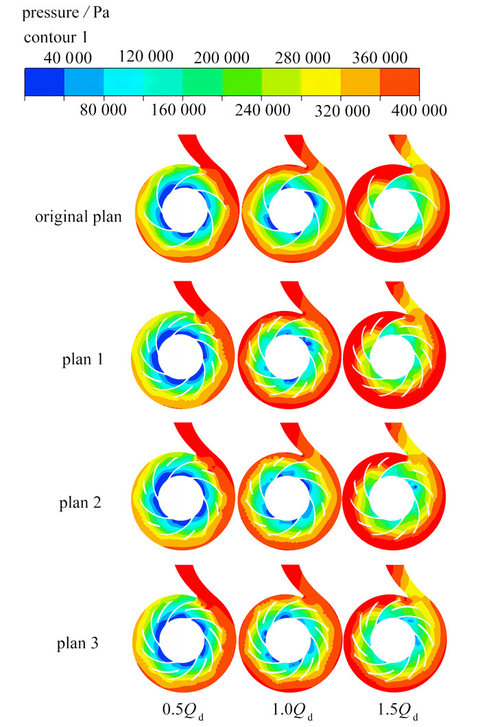 为了提高工程实际中的离心式消防泵性能,在原型泵的基础上,优化设计了一种高效、低振且扬程曲线平坦的高性能离心式消防泵. 针对消防泵目前存在的问题,基于计算流体力学方法,采用增加副叶片、改变副叶片长度的措施,设计和比较了3种优化方案. 结果表明:三种优化方案都在一定程度提高了消防泵性能. 优化方案2在设计点的扬程为42.6 m,效率为68.46%,消除了驼峰现象,降低了轴功率,并且提高了效率,综合考虑为最佳方案. 研究结果对工程实际中提升消防泵的性能、降低消防泵轴功率具有指导意义.