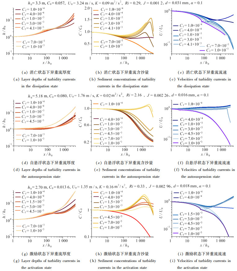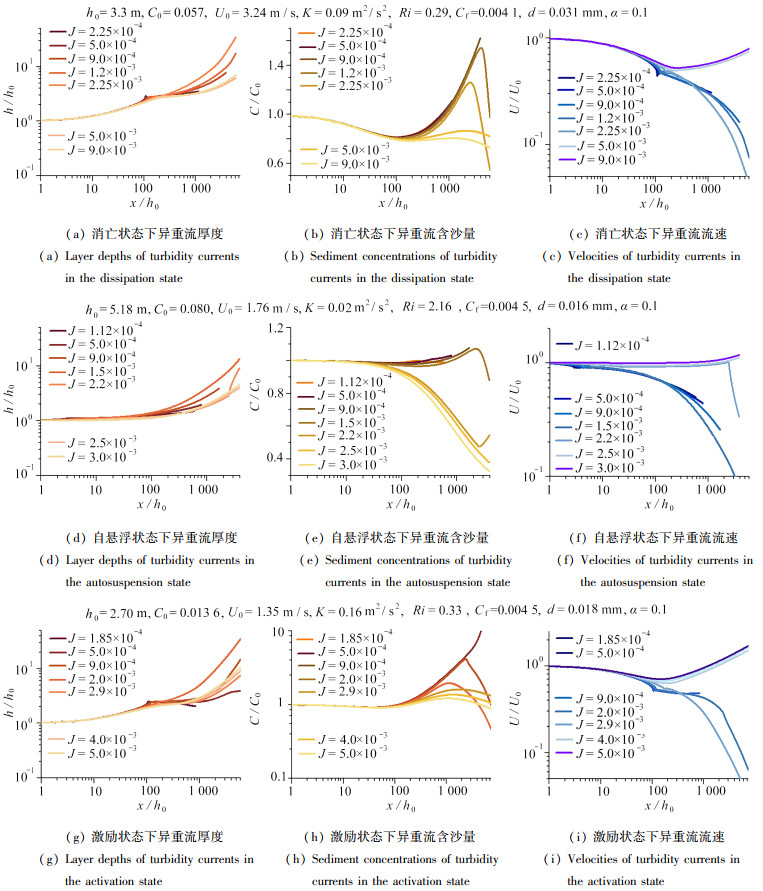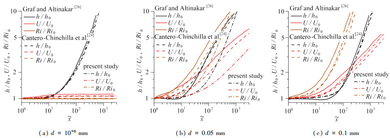水库异重流对提高水库运用效益、高效排沙以及延长水库生命周期具有重要意义,是多沙河流水库调水调沙的重要内容. 为探究水库异重流运动特征,建立了异重流控制方程,结合有效悬浮功理论与异重流自相似理论,以小浪底水库为对象分析水库异重流运动特征. 研究结果表明:小浪底水库异重流运动存在消亡、自悬浮、激励状态. 异重流沿程演化存在临界位置x0c. 在x0c上游,异重流厚度、含沙量与流速对粒径、坡降、阻力系数变化响应较小;异重流厚度在x0c下游随粒径、坡降、阻力系数增加而增加. 粒径增大/减小会使异重流从激励状态向消亡/自悬浮状态转变. 当坡降大于临界坡降时,异重流向激励状态转变;当阻力系数大于临界阻力系数时,异重流向消亡状态转变,小于临界阻力系数时异重流保持原有状态. 随着潜入点处Richardson数减小,异重流厚度在x0c下游增长速率降低、异重流稳定性减弱、异重流向消亡状态转变,在激励状态下异重流流速在x0c下游流速增加. 研究成果对揭示水库异重流运动特征提供了理论支持,为多沙河流水库调水调沙期间调度方案制定提供了理论依据.
