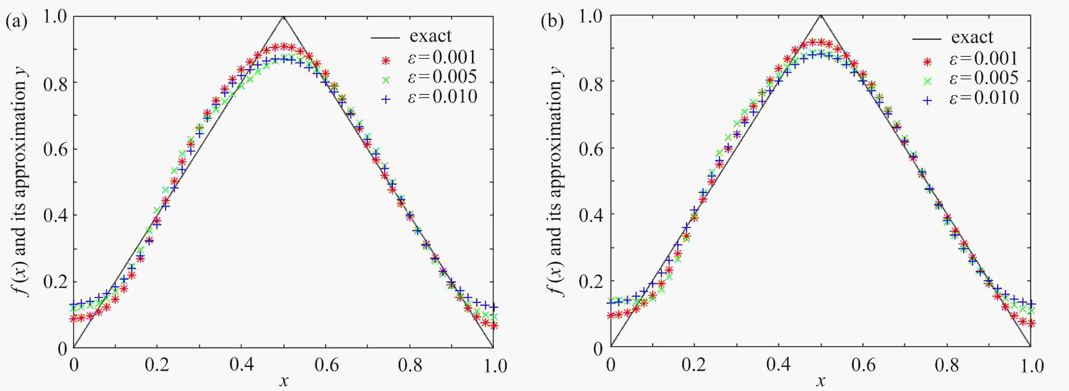 • 图  1  算例1的精确解及其正则近似解:(a)先验规则;(b)后验规则
