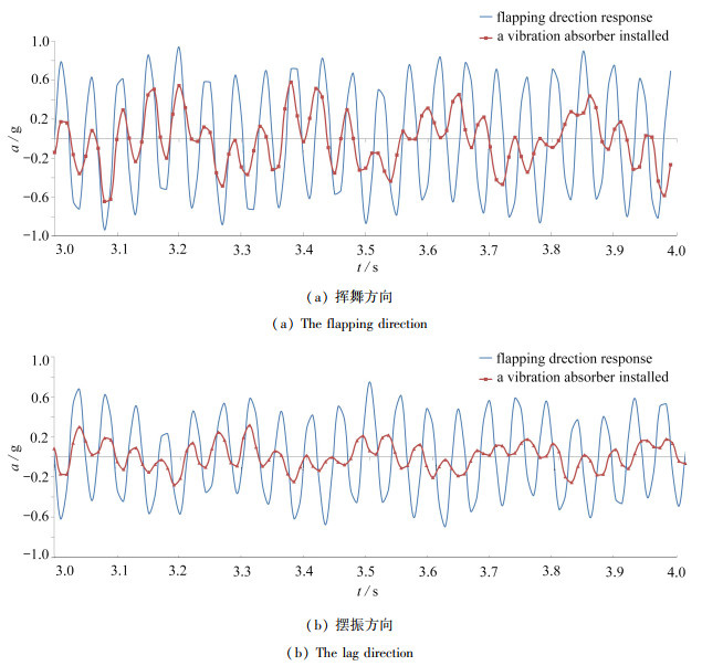 Multi-order vibration loads on helicopter rotor systems are the main source inducing airframe vibrations, and conventional 1-way vibration absorbers are difficult to balance the multi-direction vibration requirements in flapping and lag directions. To reduce the 5/REV flapping loads and 6/REV lead lag loads on helicopter rotor systems at the same time, a combined vibration absorber for helicopter blades was proposed and designed. Firstly, the vibration reduction performance of the combined vibration absorber was verified through the rotation test of the ground test bench. Secondly, a theoretical analysis model for the combined vibration absorber was established. Finally, with the rotor system vibration response as the assessment index, the vibration reduction performance analysis of the combined vibration absorber was carried out. The results show that, when the rotor system is equipped with a combined absorber, the vibration response under the 6/REV lead lag loads can be reduced by 76.1% and that under the 5/REV flapping loads can be reduced by 53% in the condition that the weight increase ratio of the rotor system is only 7.4%, and the comprehensive damping efficiency can reach 63.5%.