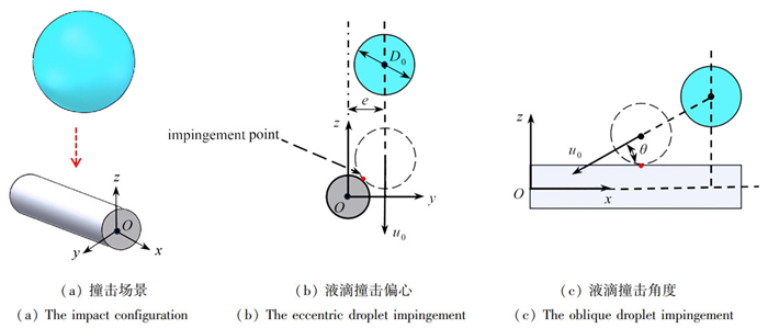 The high-gravity reactor, renowned for its superior mass transfer efficiency, plays a pivotal role in carbon capture processes. The wire mesh packing serves as the primary structural element enhancing mass transfer. To fully comprehend the dispersion mechanism, it is essential to investigate the dynamics of droplets impacting on a single fiber. The volume of fluid method was employed to numerically examine the interaction between a droplet and a fiber. The effects of factors such as the initial velocity (u0), the initial diameter (D0), the impact eccentricity (e), and the impact angle (θ) on droplet deformation and dispersion characteristics were analyzed in detail. Vertical or central impacts were divided into 4 key stages: splitting, merging, stretching, and breaking. In contrast, eccentric and non-vertical impacts exhibit asynchronous breaking, sliding splitting, and oblique deformation stages. To quantitatively assess the post-impact dispersion characteristics, the dimensionless time (t*) and the gas-liquid interfacial area growth rate (η) were introduced. The results indicate that, increasing the initial velocity, reducing the droplet diameter, minimizing the eccentric distance, and maximizing the impact angle all enhance dispersion. A correlation was established to predict the maximum increase rate in gas-liquid interfacial area.