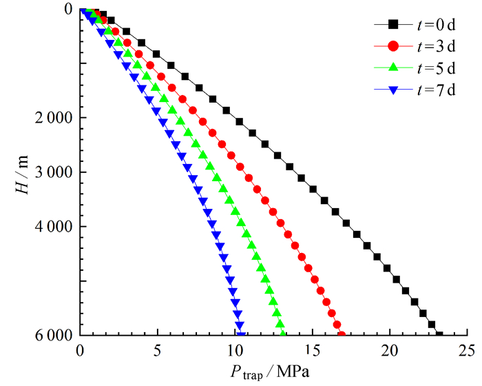 In deepwater oil and gas production operations, accurately predicting the annular trapped pressure is of decisive significance for ensuring the safety of oil and gas wells, optimizing the production process, and extending the service life of oil and gas wells. The water-based annular fluids were investigated and the density and thermophysical property parameters under various settlement times were systematically tested, and the influence law of solid-phase settlement on the fluid parameters was sorted out. Based on the law of constant-volume thermodynamics, in view of key factors such as solid-phase settlement and dynamic changes in the thermophysical property parameters of the fluids, a calculation method for the multi-annular coupled trapped pressures applicable to gas wells was proposed. Through comparison of the calculation results of this method with the measured trapped pressure data at the underwater wellhead, the maximum error between the 2 is only 8.91%. With a typical offshore gas production well as a specific example, a program was developed with the.Net language to solve and operate the constructed model. The results show that, the solid-phase settlement has an extremely significant effect on the density of the annular fluid. With the continuous increase of the settlement time, the fluid density shows an obvious downward trend. After a 7 d test, the drilling fluid density gradually decreases from the initial value of 1.7 g/cm3 to 1.23 g/cm3 and tends to be stable, with a density reduction of up to 27.65%. With the well depth increase, the gas production rate rise, the isobaric expansion coefficient uplift and the drilling fluid isothermal compression coefficient growth, the annular trapped pressure always shows an increasing trend. Under the condition of the same thermophysical property of the fluid, the annular trapped pressure is particularly affected by the closed volume of the annulus. The trapped pressure in the 1st annulus is 23.2 MPa, that in the 2nd is 15.53 MPa, and that in the 3rd is 7.69 MPa. In addition, the comparison of the tubing displacement at the wellhead with that at the bottom of the well indicates that, the maximum tubing displacement at the wellhead decreases from 1.69×10-6 m to 6.1×10-7 m, and the tubing displacement at the wellhead is about 2.77 times that at the bottom. The accurate solution of the annular trapped pressure can provide an extremely crucial theoretical basis and data support for practical engineering operations such as checking the pipe string safety factor, evaluating the wellhead uplift risk, and optimizing the cement return height design, and effectively contribute to the safe and efficient development of deepwater oil and gas production operations.
